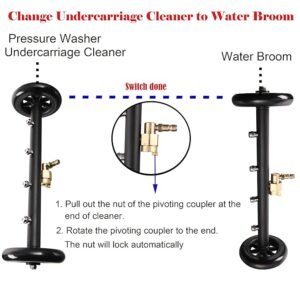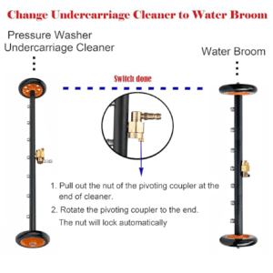 - 16″ under car cleaner for pressure washer with 4 nozzles and 2 casters 360-degree rotatable. Suitable for both hot and cold water.