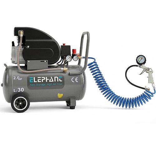 Elephant Air Compressor 30 litres 2 HP AC30C with Tire Inflating Gun TG-08 & PU Pipe 10 Mtr. Coil (AC30C-TG08)