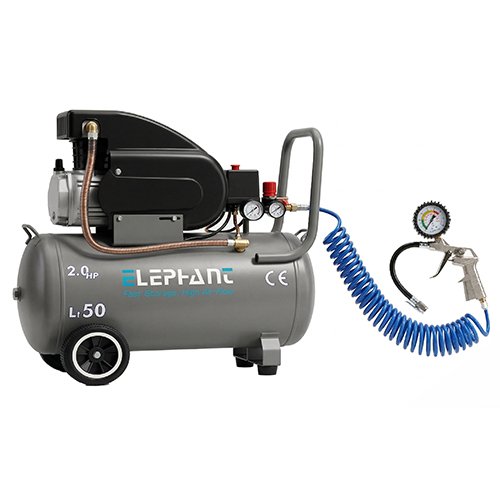 Elephant Air Compressor 50 litres 2 HP AC50C with Tire Inflating Gun TG-08 & PU Pipe 10 Mtr. Coil.