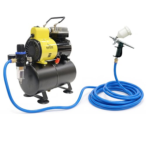 Elephant Combo of Piston Type Mini Air Compressor with fan and 3 ltr. Air tank capacity AS-186 with Artmaster Airbrush AC-60 and PU Pipe 3 Meter. (AS-186-AC-60)