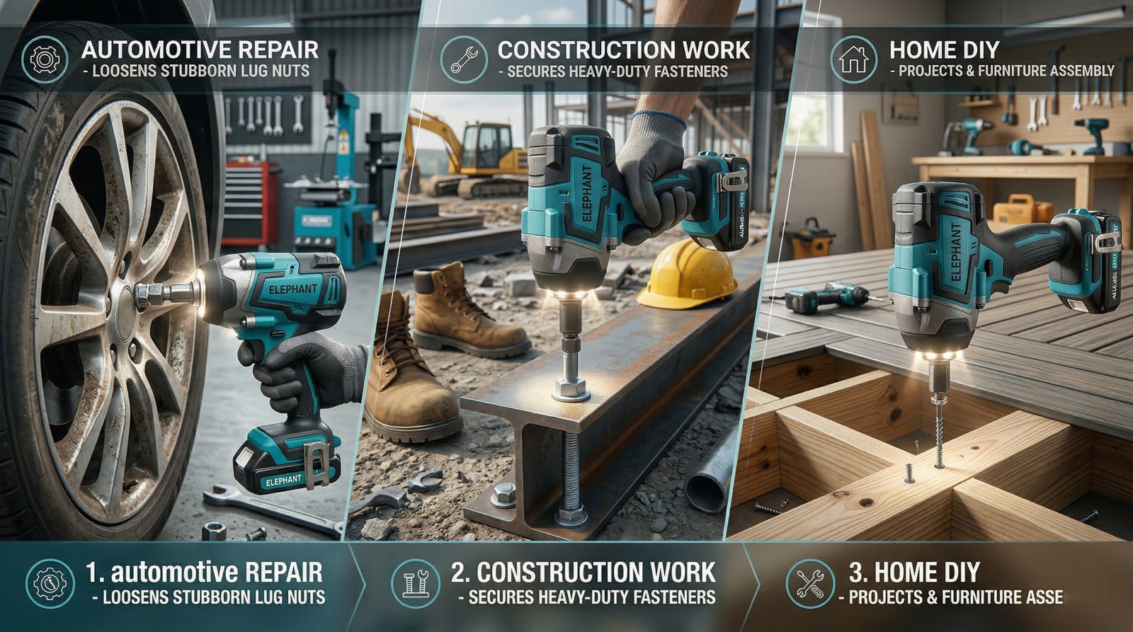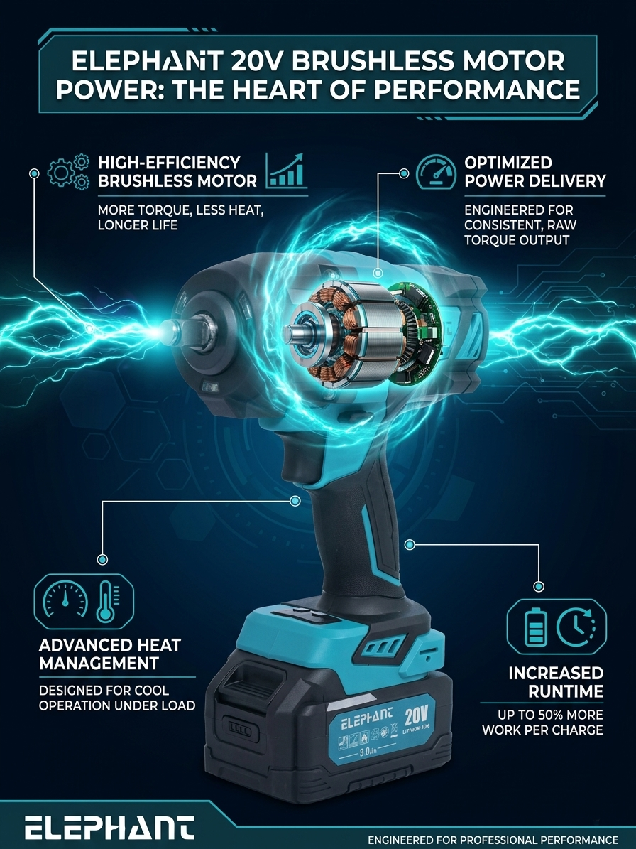Maximum torque of 600 Nm with a speed of 2400 RPM, making it ideal for loosening tight nuts, bolts, and screws on bicycles, motorcycles, and mechanical equipment. Powered by a brushless motor that improves durability and overall efficiency. - Versatile Applications