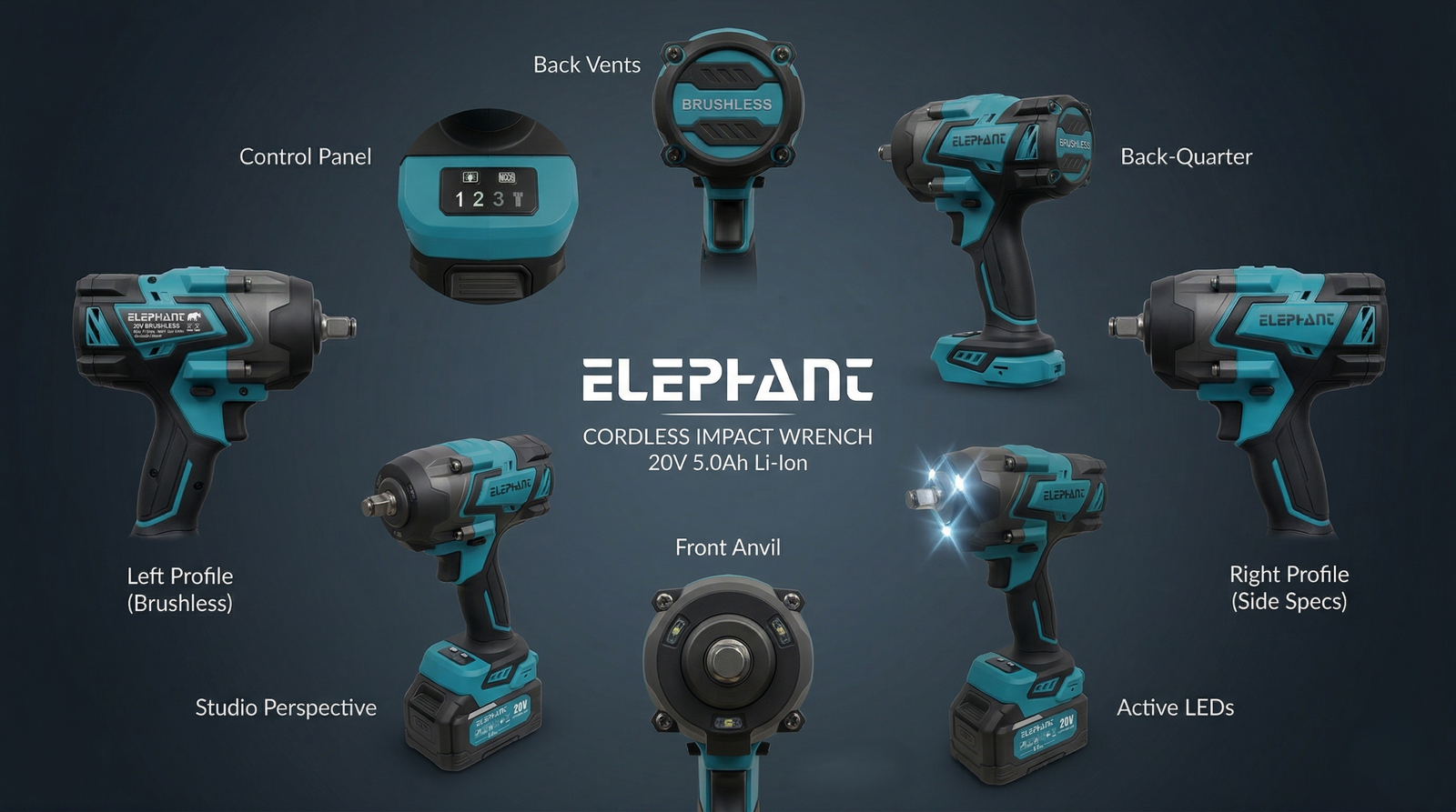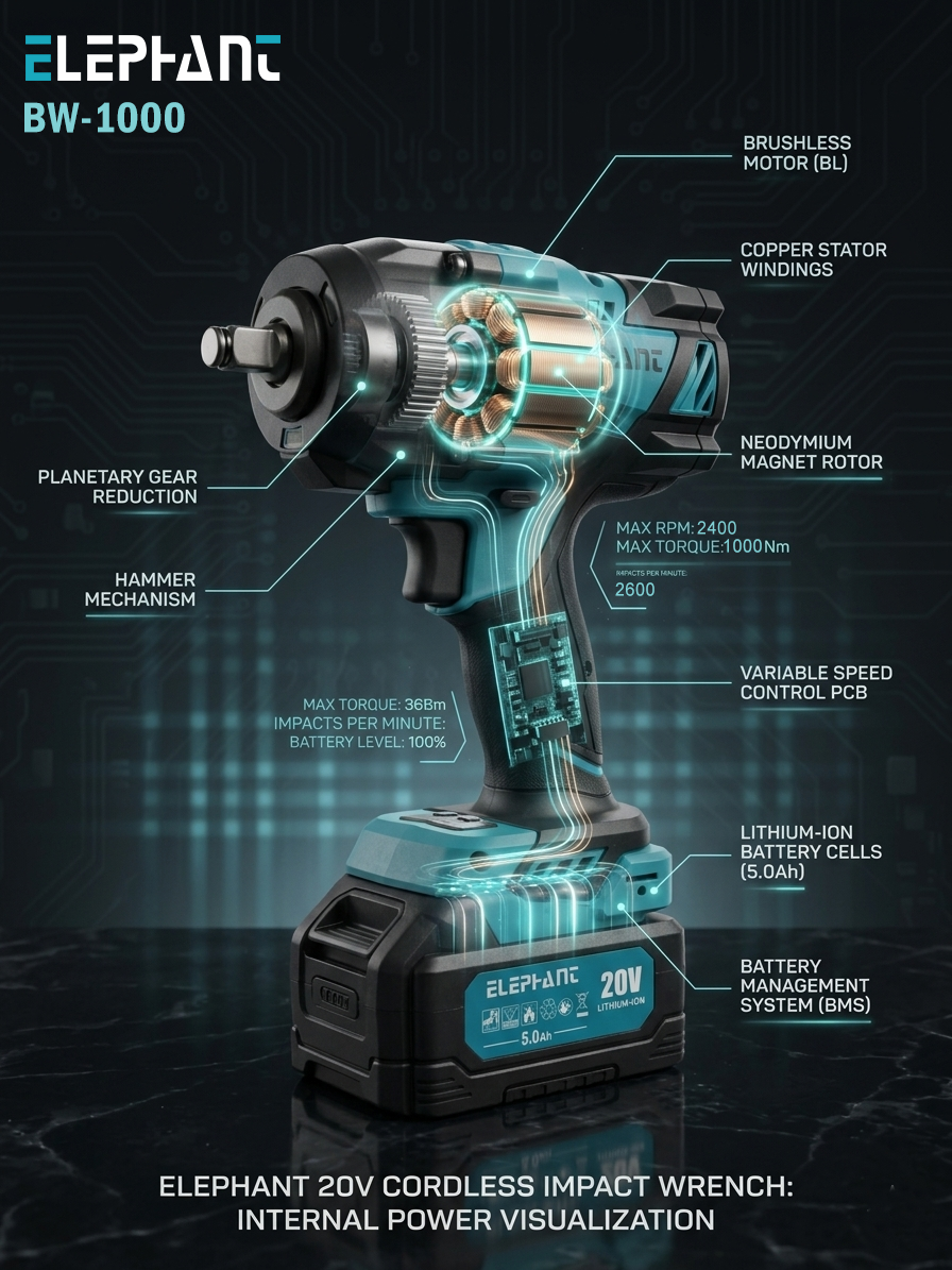 Elephant Heavy Duty 20V Cordless Impact Wrench with 2 Batteries | Build-In LED Lights | Forward & ReverseSwitch BW-1000.
