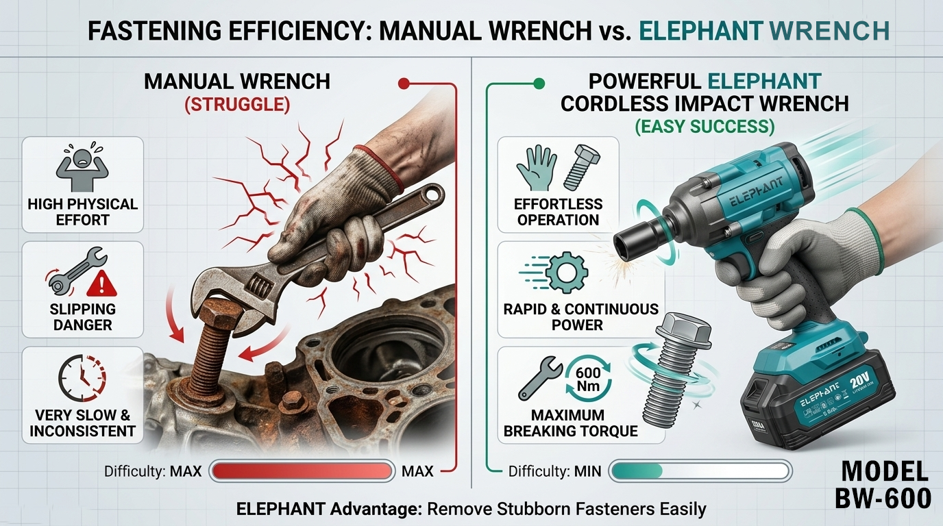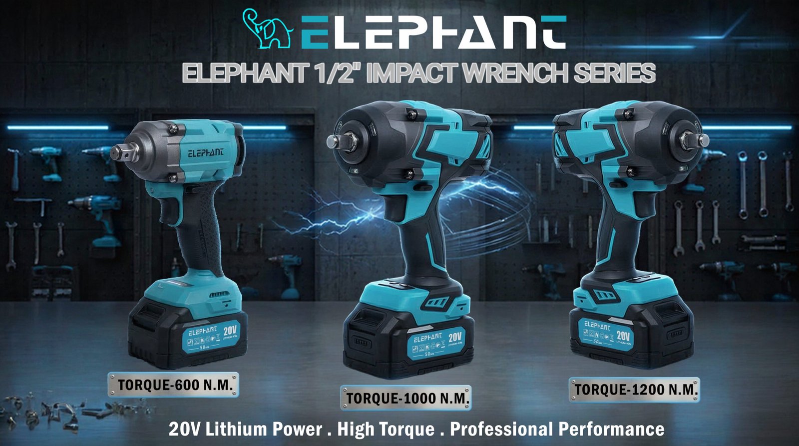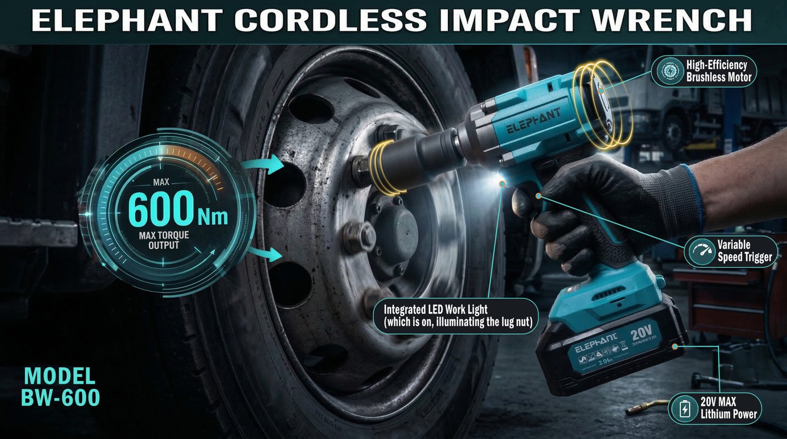 Elephant Heavy Duty 20V Cordless Impact Wrench with 2 Batteries | Build-In LED Lights | Forward & ReverseSwitch BW-600.
