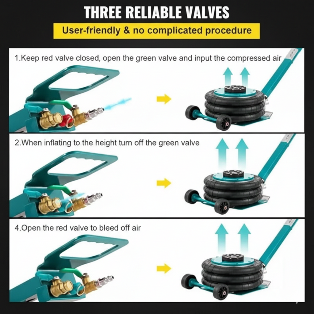 Elephant Heavy Duty Triple Air Bag Pneumatic Balloon Jack 11000lbs Quick Lift 5 Ton.