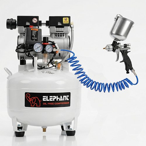 Elephant Oil free & Noiseless Air Compressor 30 Ltr 100% Copper Winding. and Painter Plus Spray Gun PS 01 with PU Pipe & Fittings (AC 30DR – PS 01)