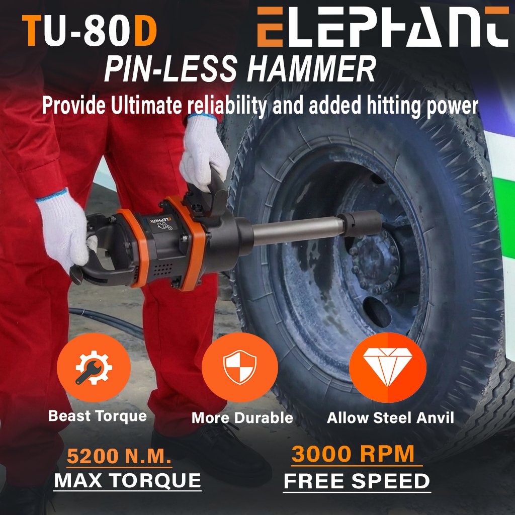 Elephant Series TUTA 1 INCH Super Heavy Duty Impact Wrench Torque 5200 N.M. Pin less Hammer (TU-80D)